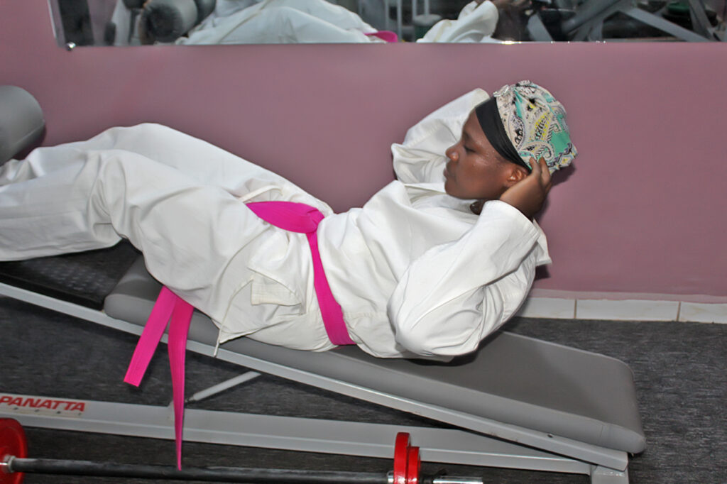 Vêtue de kimono blanc avec une ceinture de couleur rose, cache-nez rose (Covid-19 oblige) et foulard rose; la quintuple championne du Mali en karaté a revisité ses techniques et même animé un cours. C’est toute l’après-midi qui a été mis à profit pour permettre aux championnes, anciennes comme celles encore en activité, de travailler sur le tatami en hommage et soutien aux femmes victimes de la maladie.