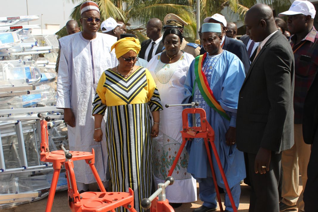 Mme Keïta Aminata Maïga, présidente de l’ONG Agir, a présidé la remise officielle des kits d’installation à 519 jeunes filles et femmes formées par l’ONG Agir à travers le projet Sweed : « Autonomisation des femmes et dividende démographique », le samedi 28 décembre 2019 à Bamako.